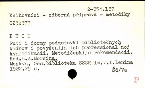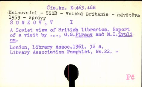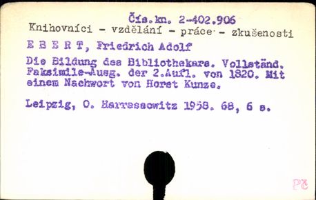 Právě se nacházíte: › UK3 - Předmět. do 1987 › KNIHOVNÍCI - › Záznam č. 1. - 46.