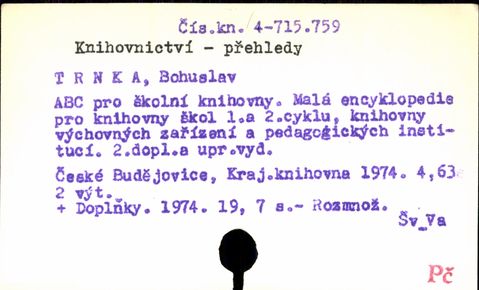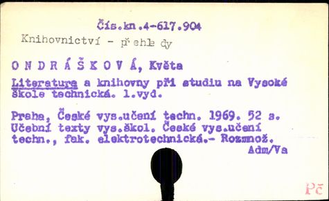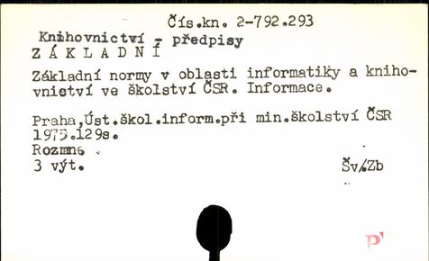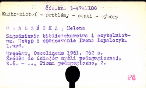 Právě se nacházíte: › UK3 - Předmět. do 1987 › KNIHOVNICTVÍ - P - › Záznam č. 1. - 89. › Záznam č. 41. - 50.