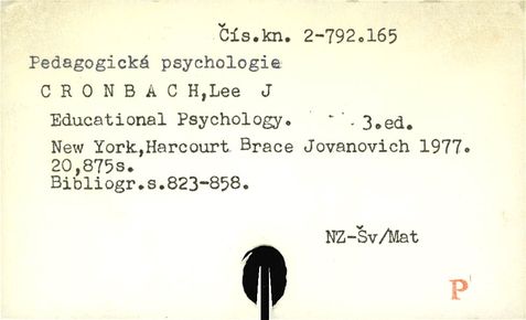 Právě se nacházíte: › UK3 - Předmět. do 1987 › PEDAGOGICKÁ PSYCHOLOGIE -